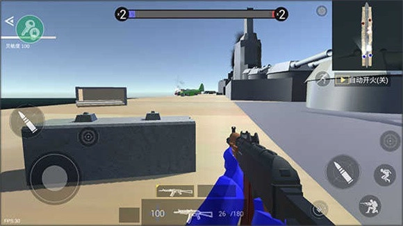 4、该游戏的操作方式和其他射击类游戏类似,通过屏幕左侧的轮盘来控制角色移动,右侧的控制区域则可完成瞄准、射击、换弹、跳跃以及下蹲等一系列动作。