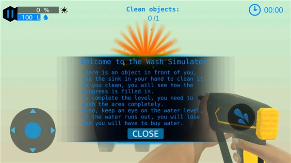 4、玩家可点击右侧的水滴键来清理当前视野内的物体,左侧用于控制360度视角,你需要以360度无死角的方式清理眼前的物体。