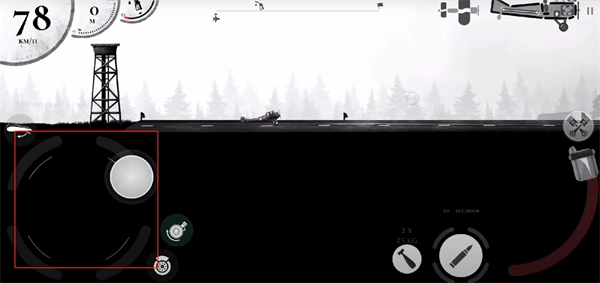 3、加速完成后,通过操纵杆操控飞机,操纵杆的指向即为飞机即将飞行的方向。