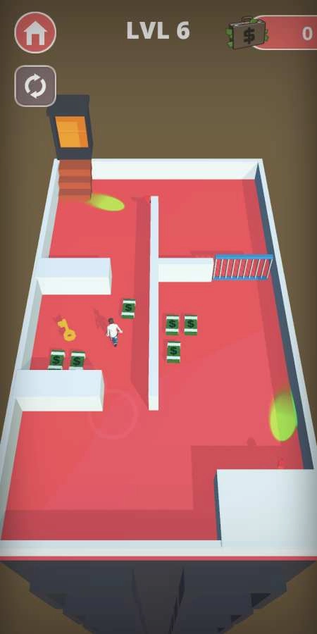 在游戏里,玩家需要潜入各个不同的房间,一边避开巡逻的人员和摄像头,一边收集房间里的现金与珠宝。
