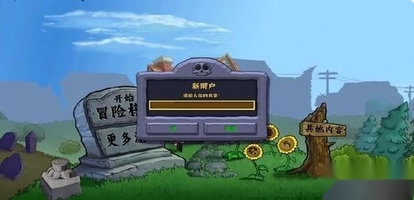 2、新用户会收到弹窗提示,需输入名字来创建个人档案,弹窗下方设有“确定”和“取消”两个按钮供选择,完成这一初始化步骤后,就能正式进入植物大战僵尸的世界了。