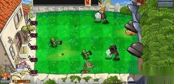 4、如果只专注于选择攻击型植物,而不搭配防御类植物,那么高速僵尸很容易绕到防线后方,从而突破我们的防御。