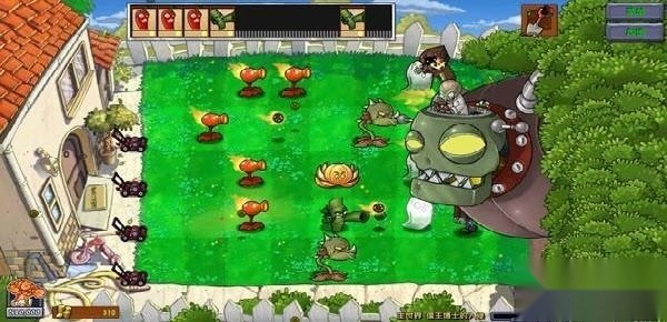 6、最终关卡将上演巨型机械僵尸Boss战,多列火炬树桩可增强豌豆射手的火力,屋顶场景中紧张的血条显示机制,全面考验玩家的终极防守策略与资源调配能力。