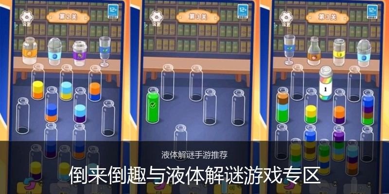 通过倾倒、混合不同颜色的液体来完成关卡目标的物理解谜游戏。需要精确控制倒入量,避免溢出,最终配出指定颜色或注满容器。